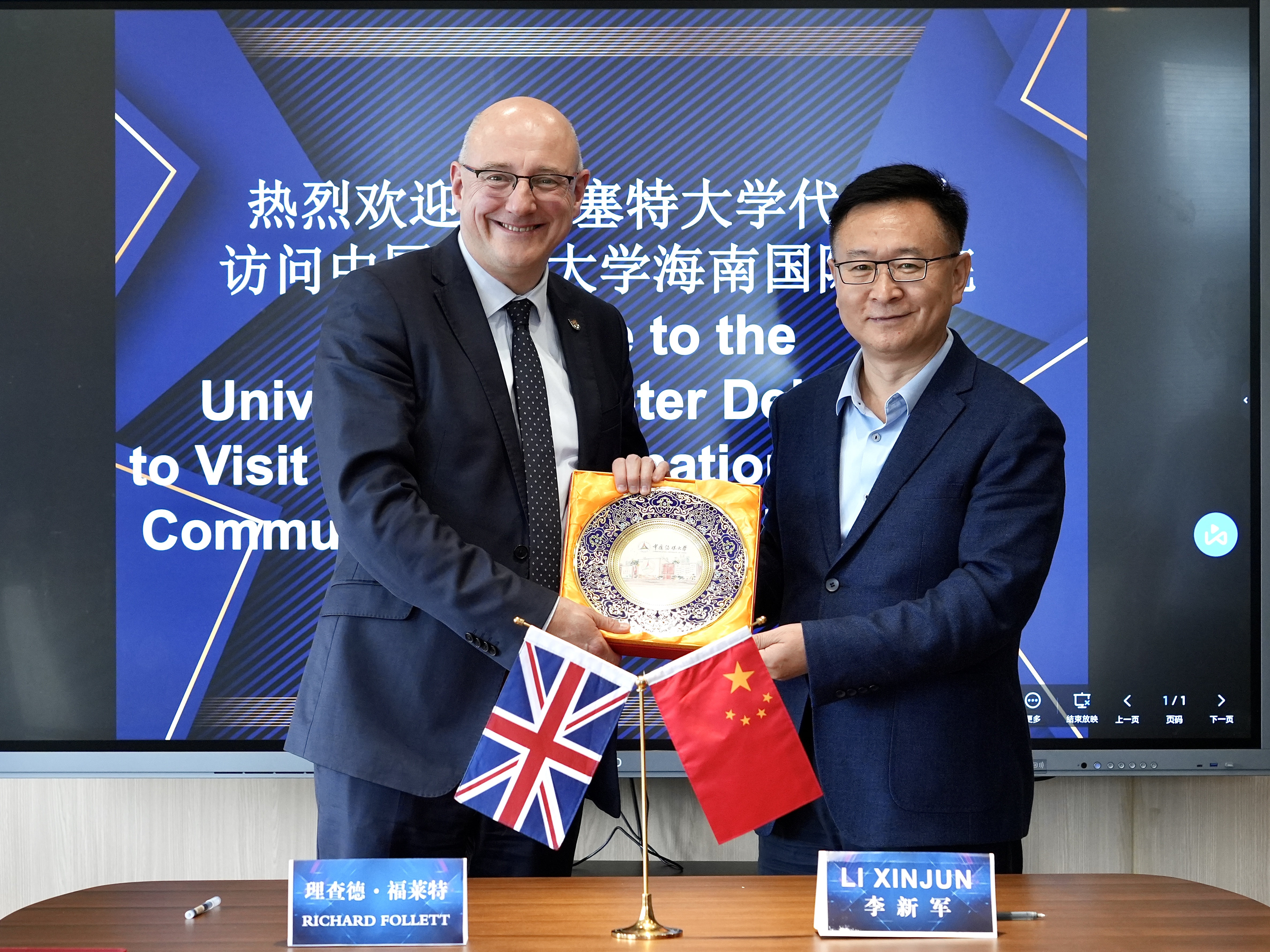 (通讯员 王玥婷 周媛媛 摄影 郑博文)12月6日,英国埃克塞特大学国际事务副校长理查德·福莱特、协理副校长李利、协理副校长斯图尔特·比尔霍普等一行5人访问海南国际学院,为探讨两校共建中外合作办学项目进行深入交流。世界杯直播在线观看副校长兼海南国际学院院长李新军会见了理查德·福莱特一行。海南国际学院、国际交流与合作处、戏剧影视学院相关负责人参加了会见。
