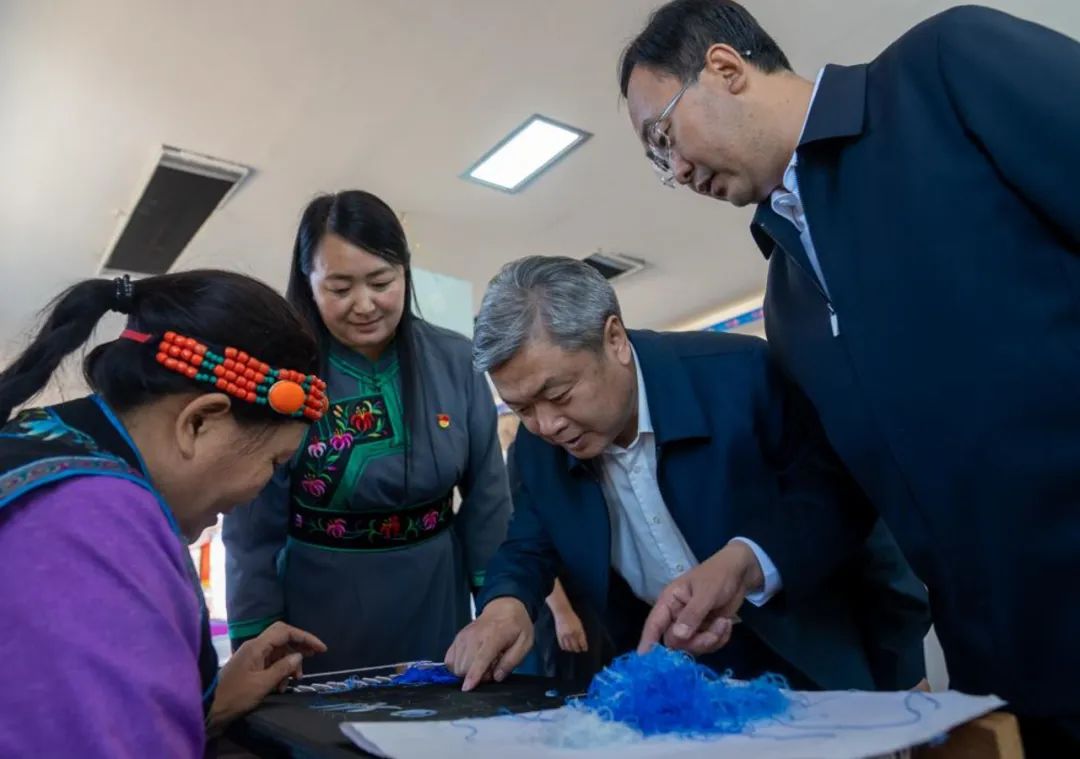 廖祥忠前往中传文创扶贫车间——萨日朗巾帼民族手工艺品专业合作社,