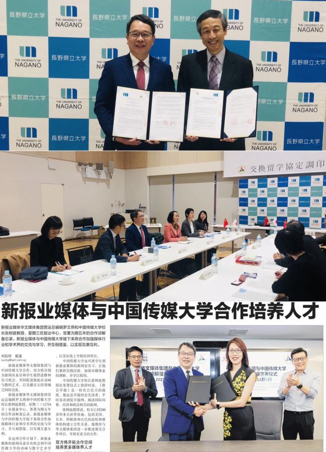 我校代表团到访新加坡新报业媒体集团,双方举行了合作协议签署仪式,标志着双方合作进入新的阶段。按照协议内容,双方将在动画、数字艺术和播音主持艺术等领域开展合作。新报业媒体集团《联合早报》总编辑吴辛迪表示,华文媒体集团将为世界杯直播在线观看在人才培养领域提供更多媒体实习实践的机会。新加坡《联合早报》对我校代表团来访及合作协议签署等活动进行了报道。