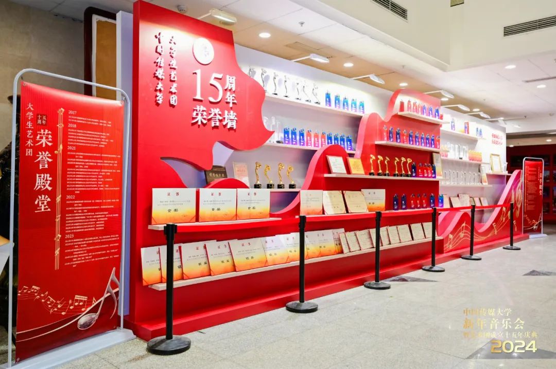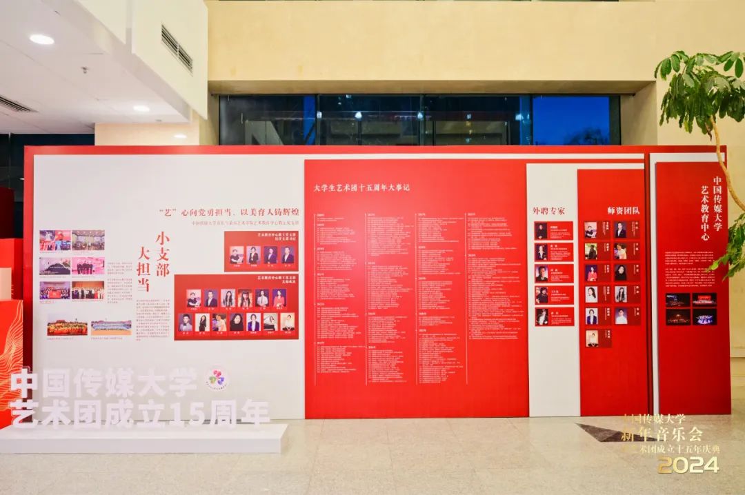 今年是学校大学生艺术团成立十五周年,艺术教育中心在中传礼堂外举办纪念展并由艺术团进行了现场表演。纪念展介绍了十五年来学校大学生艺术团的发展和取得的荣誉,以及中心党建和师资队伍的情况。