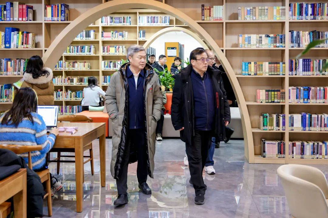 随后,苏志武等还实地考察了艺术与传播大楼、“心港湾”建设情况,1号教学楼、48号教学楼升级改造情况,以及阅读广场、传音广场、艺术廊架等校园景观群。他称赞校园环境优美,软硬件水平同步提升,尤其是校园“南北合一”实现了几代中传人的梦想,中传校园处处体现“师生至上”的理念。