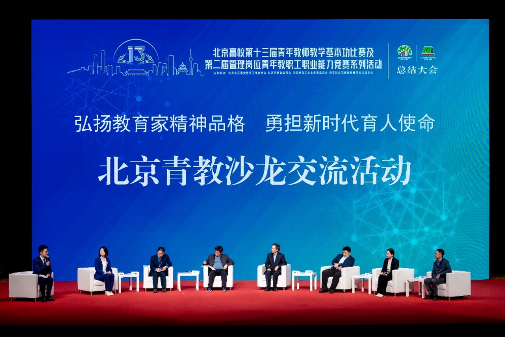 活动当天,以“弘扬教育家精神品格、勇担新时代育人使命”为主题的北京青教沙龙同期举行。本届比赛优胜选手代表、专家评委代表、主办和承办单位代表参加此次沙龙,就未来青教赛发展方向、实现青年教师职业发展有效途径、青教赛对助力青年教师如何成长为新时代“好老师”等话题进行了交流讨论。我校第十二届青教赛二等奖获得者,来自播音主持艺术学院的齐靖文老师受邀主持本次青教沙龙交流活动。