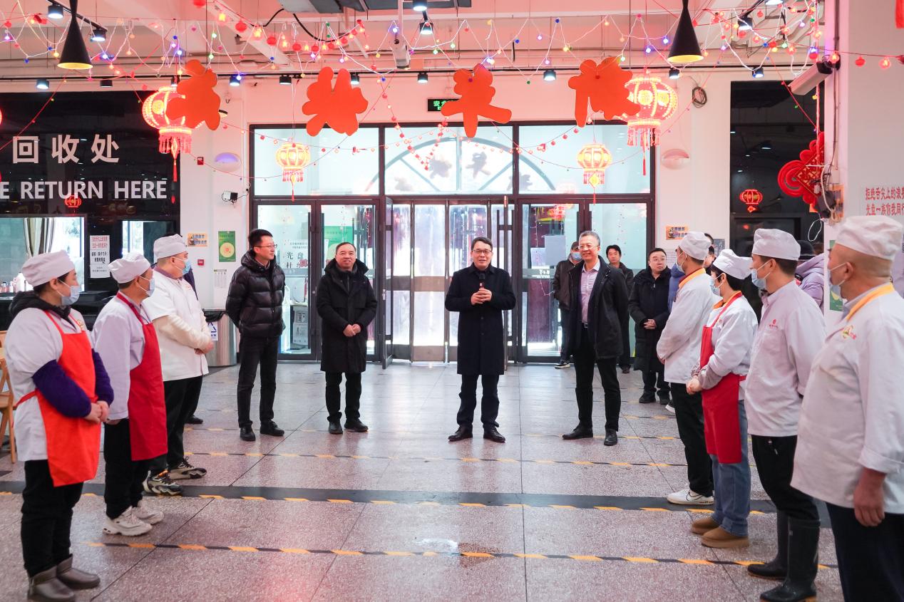 在保安和保洁队、校医院和北苑餐厅,校领导详细了解了假期安保、保洁、医护及餐食保障情况,充分肯定了在岗教职工舍小家为大家,保障学校安全稳定运行的担当奉献精神。