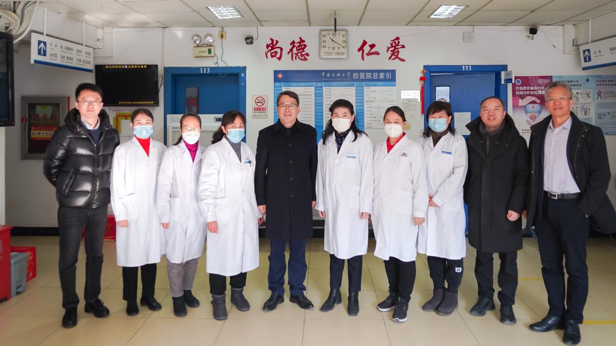 校领导先后走访了中蓝学生公寓、留学生公寓、校医院和北苑餐厅等地,看望在岗教职工和学生并送上“暖心礼包”。