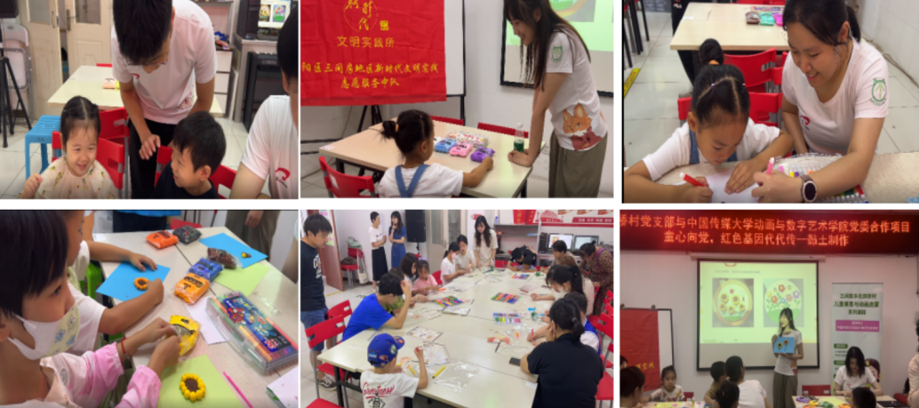 为积极响应北京市教工委关于红色“1+1”活动的号召,世界杯直播在线观看动画与数字艺术学院本科生党支部与三间房乡北双桥村党支部开展了系列共建活动。活动通过动画的形式将美育知识和体验带给当地儿童,并促进他们的创造力、审美能力和文化认同的发展。与此同时,传媒学生也运用专业知识美化街道,提升乡村居民的幸福感。本年度开展共建活动12次(含专题研讨3次、美育课堂5次、文创市集3次、设计主题月1次),形成了2万字的乡村儿童美育教案,完成小红军动画创作、室内红色教育展板设计3幅、室外展板6幅、沉浸式灯光设计作品12组。先后共有30名党员、120名积极分子参与活动,辐射当地居民近2000人次。