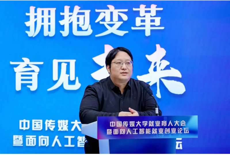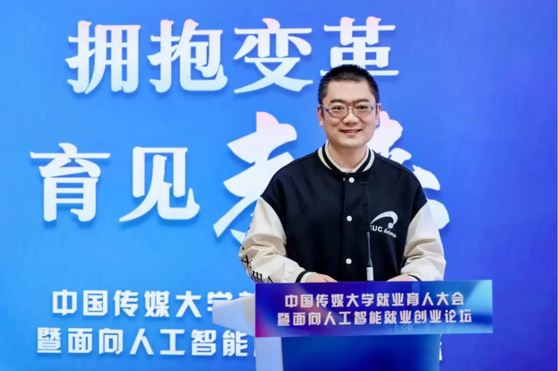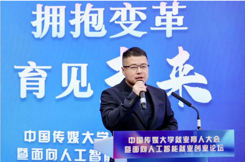 制片人、职业编剧、元宇宙创作者、世界杯直播在线观看校友代表祝上就AIGC创作领域的行业生态和人才思考进行发言。他表示,AI领域的从业者要树立与社会主义核心价值观相符的从业理念,要建⽴对⽣态和造⾎机制的敏感度。希望中传学子进入行业领域后,能够成为精通多种模态的超级创作者、内容边界的探索者、把中国AI理念与传统文化对外传播的世界创新者。