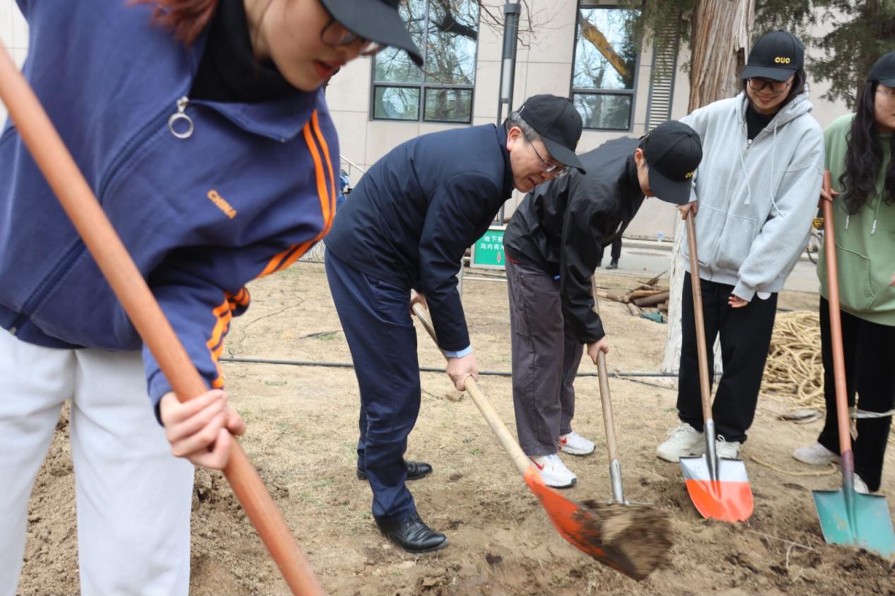 (通讯员 杨垒垒 柳城 摄影 郭中一 )为贯彻落实习近平总书记参加首都义务植树活动时的重要讲话精神,迎接第40个“首都义务植树日”,结合乡村振兴定点帮扶合作以及美化校园环境等主题,增强劳动教育育人实效,我校于4月4日上午组织在校园内开展义务植树劳动实践活动。学校党委副书记、校长张树庭,校长助理金炜与参加活动的学生代表一起参加植树劳动。本次活动在象征我校与内蒙古科尔沁右翼前旗帮扶情谊的“传旗林”进行,大家一起种下五角枫、紫叶稠李、光辉海棠、京桃、山杏等树木,共同装扮美丽校园。