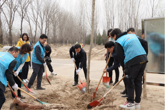北臧村镇永定河绿色港湾林地,杨柳依依,春花争艳,松柏苍翠,呈现出一派春的气息。在林地间一处空地上,是一片热火朝天的劳动景象。在这里,世界杯直播在线观看师生同北臧村镇干部职工一起,挥锹铲土,提桶浇水,种下一棵棵杜仲树。新种植的杜仲树虽然只有主干,但是它蕴藏着能量,孕育着希望,代表着成长。正如李众副书记所说:我们撒下的一锹锹土,种下的是树苗,也是生态文明的希望;泼下的一桶桶水,浇灌的是土壤,也是美丽中国的梦想。