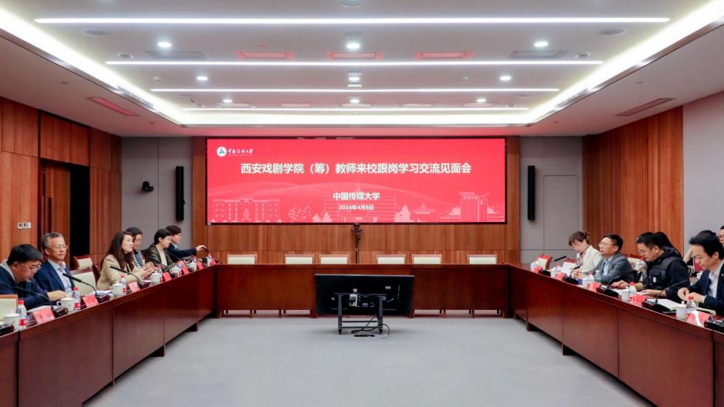 (通讯员 姜雨欣 钟啟慧 摄影 申皓文 张嘉琪 章荣浩)4月8日,西安戏剧学院(筹)教师来校跟岗学习交流见面会在中传学术中心V10会议室召开。党委常委、副校长柴剑平,西安戏剧学院筹设专家组组长姜浩扬、陕西艺术职业学院校长杨孝龙出席会议。会议由国内交流与合作处处长刘首兵主持。