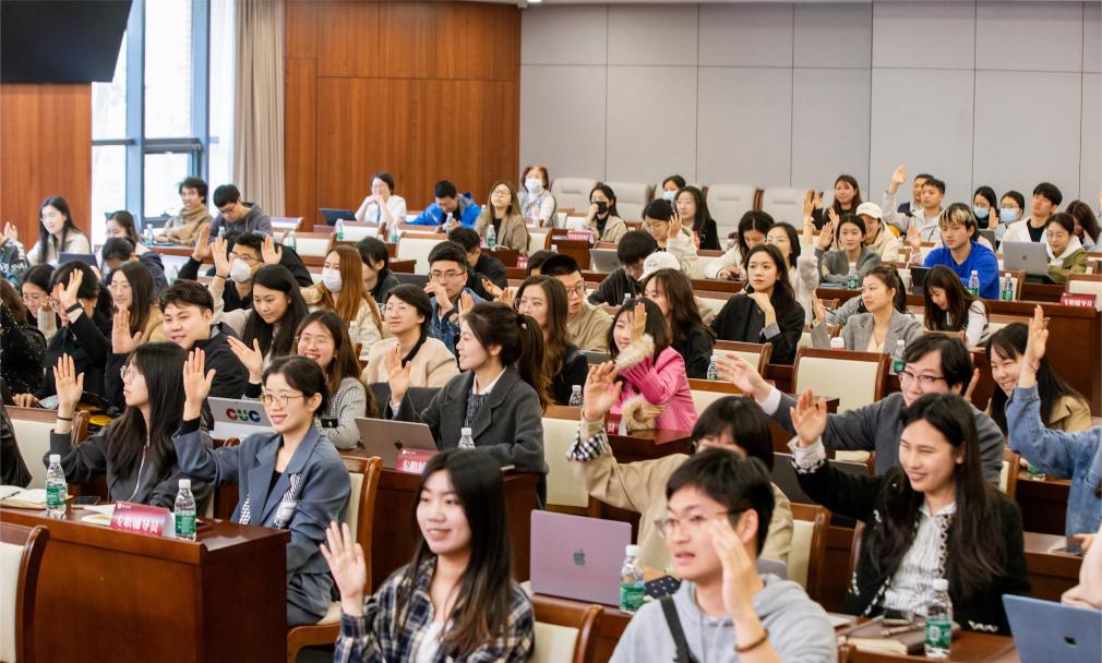 刘亮的报告内容深入浅出,角度前沿新颖,将人工智能与高等教育、思想政治教育紧密结合,现场金句频出。在提问环节,大家踊跃举手,纷纷表达了对人工智能促进未来教育发展的坚定信心。在交流互动环节,与会师生围绕人工智能在思政教育领域的运用、传媒与人工智能相结合所面临的机遇与挑战等话题与刘亮进行积极互动。