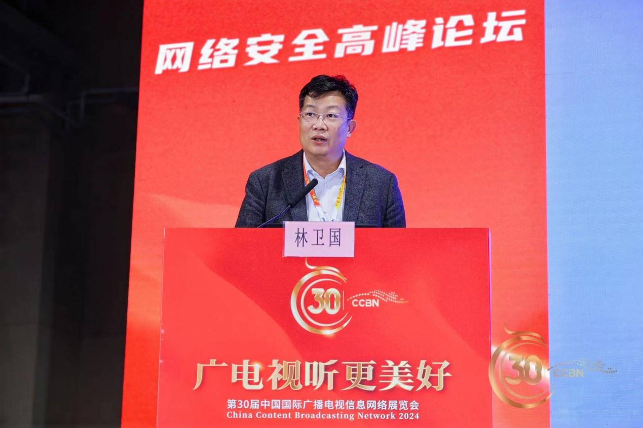 计算机与网络空间学院院长林卫国教授受邀参加CCBN“网络安全高峰论坛”,并作“网安强基,传媒创新——共筑广电网络安全之路”的主题报告,介绍了计算机与网络安全学院聚焦认知域安全、网络安全、系统安全和人工智能安全等前沿领域,开展了一系列创新性研究,取得了一系列具有国际影响力的成果,为我国网络安全事业发展贡献了智慧和力量,为国家安全和广电网络安全提供有力的人才和智力支持。