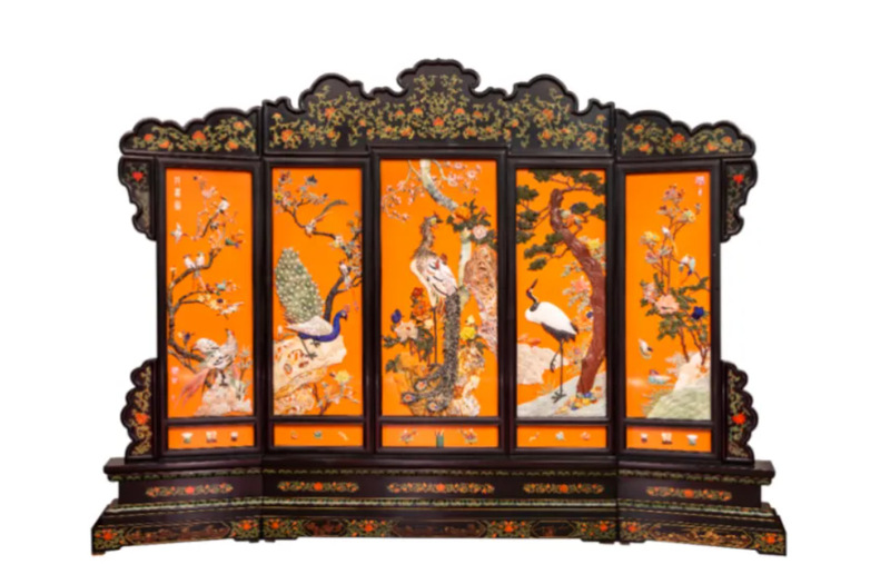 金漆镶嵌大型花鸟屏风《丹凤图》