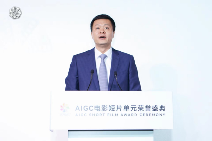 北京国际电影节组委会办公室执⾏副主任崔岩介绍了设立AIGC单元的愿景和使命,并对支持本次AIGC单元的各界朋友表示衷心地感谢,本届电影节是全球首个AIGC+的电影节,AI技术发展虽然快速迭代,但我们任重道远,希望通过首届AIGC单元与各界影人共同探索电影的新形态,开启光影艺术和技术创新的未来。