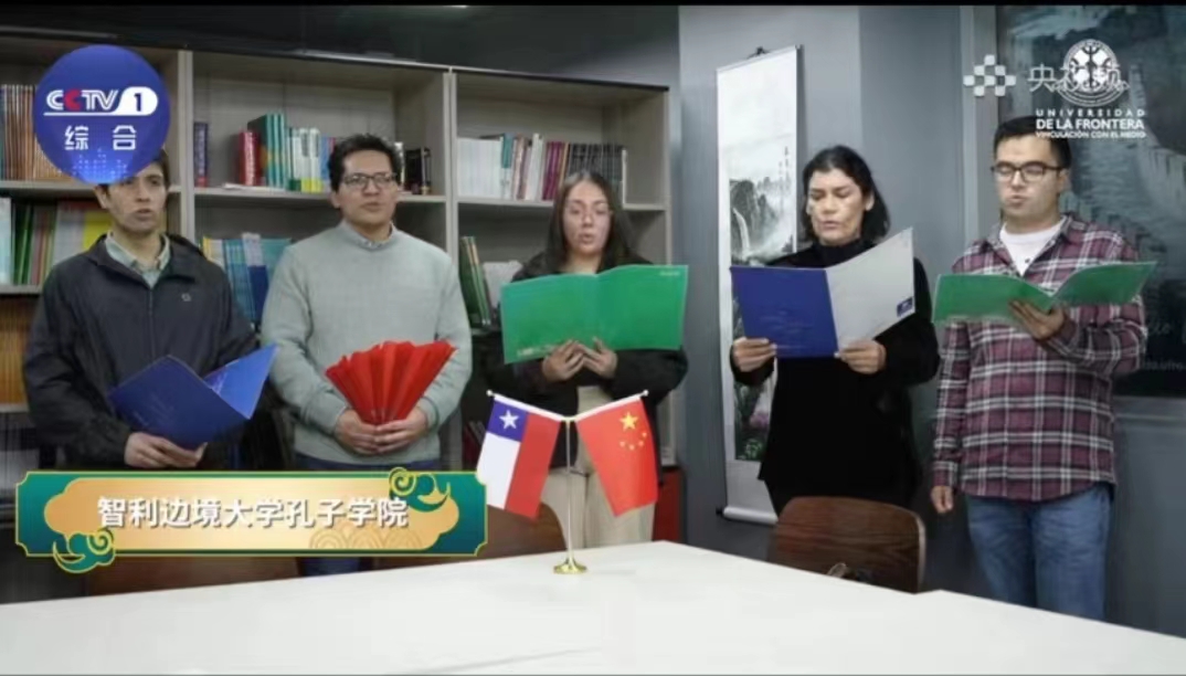 智利边境大学孔子学院庆祝活动中,校长爱德华、智方院长宝拉也参加活动并发表致辞。CGTN在西语频道中进行了专题报道。