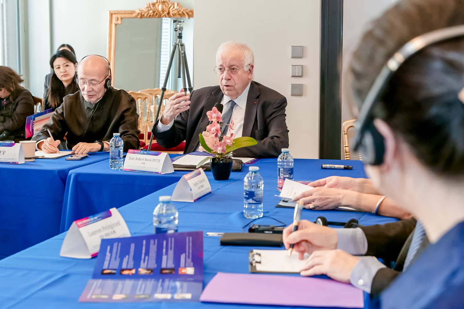 Jean-Robert Marie PITTE在致辞中表示,在中法建交60周年的伟大时刻,习近平主席在巴黎进行了成功的国事访问。中法友好关系可追溯至明朝和路易十四时期,毛泽东主席和戴高乐将军时期迈出外交关系第一步。历史上国家之间多存在纷争和不同,但历史也告诉我们一定要进行友好对话。中法间差异与共性并存,两个城市都是政治和文化中心,北京的中轴线和巴黎的中轴线也都是各自城市的象征,他希望两国在各领域能有更深层次的联系。