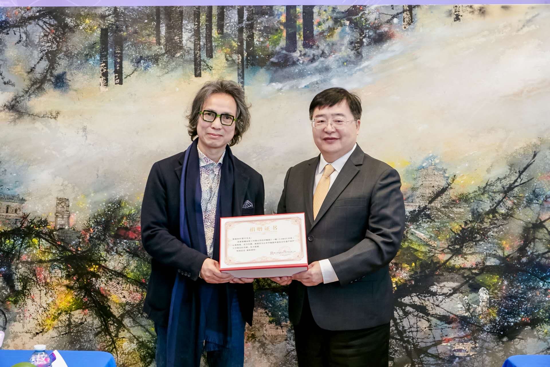 旅法画家叶星千到场向北京京企中轴线保护公益基金会捐赠了与北京中轴线同名的巨幅油画作品,并解读了作品对北京中轴线历史文化底蕴的价值阐释、艺术表现手法和艺术再现理念。