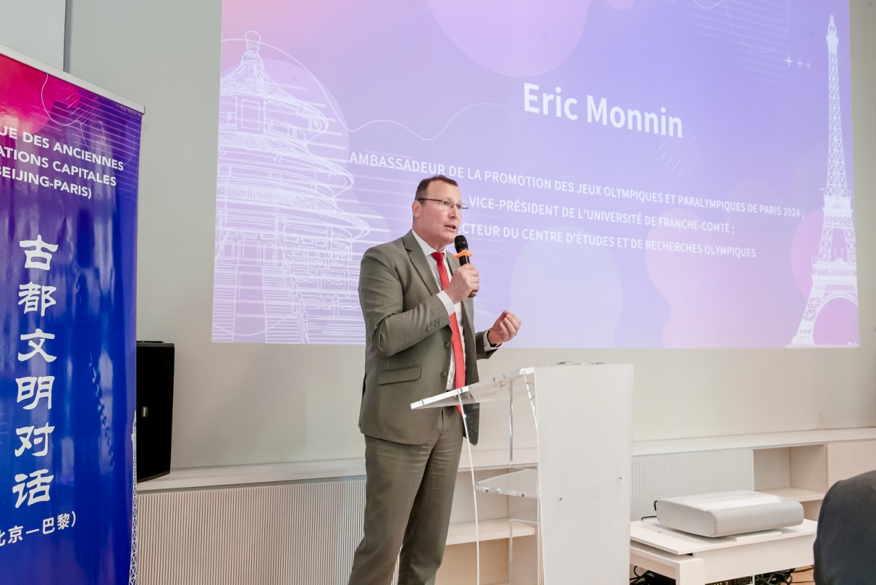 巴黎奥运会和残奥会推广大使、法国弗朗什·孔泰大学副校长兼奥林匹克研究中心主任Eric Monnin作“2024年巴黎第三十三届奥林匹克运动会传播的奥林匹克价值观和原则”主题发言。