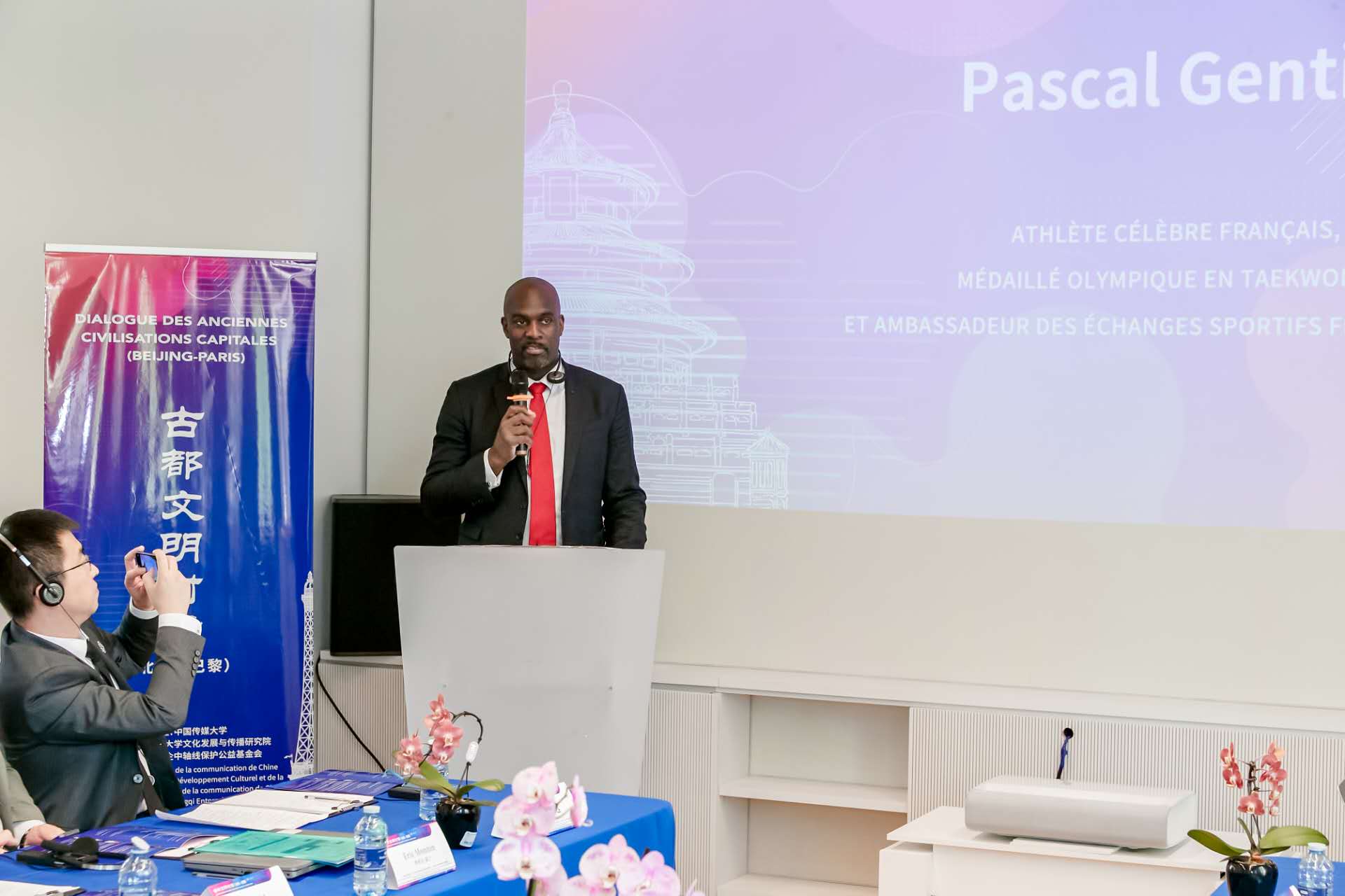 法国知名运动员、跆拳道奥运奖牌得主、法中体育交流使者Pascal Gentil作“体育外交”主题发言。