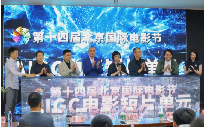 来自影视行业的知名导演、制片人,高校相关专业教师,AI技术专家等各界来宾共同在开幕式现场开启第十四届北京国际电影节首届“AIGC电影短片单元”。