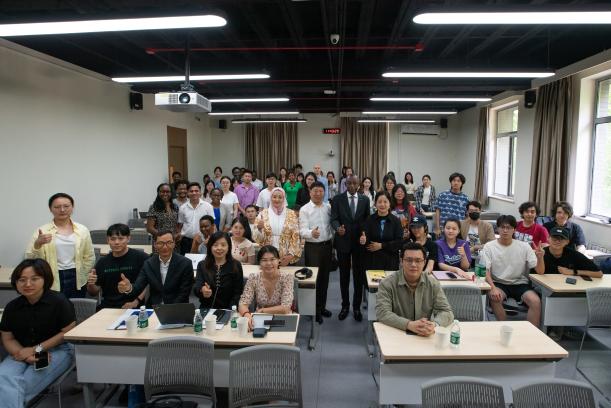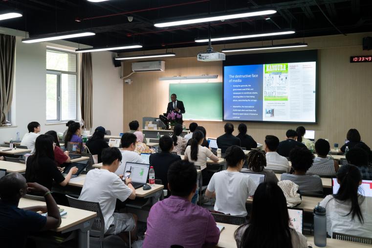 会谈后,基莫尼奥大使给学校师生作了“以共同发展为目标的包容性治理”为主题的讲座,系统阐释了媒体在社会发展中的双重作用。讲座结束后,大使还与现场师生就中卢关系、媒体的社会作用等话题作了互动交流。