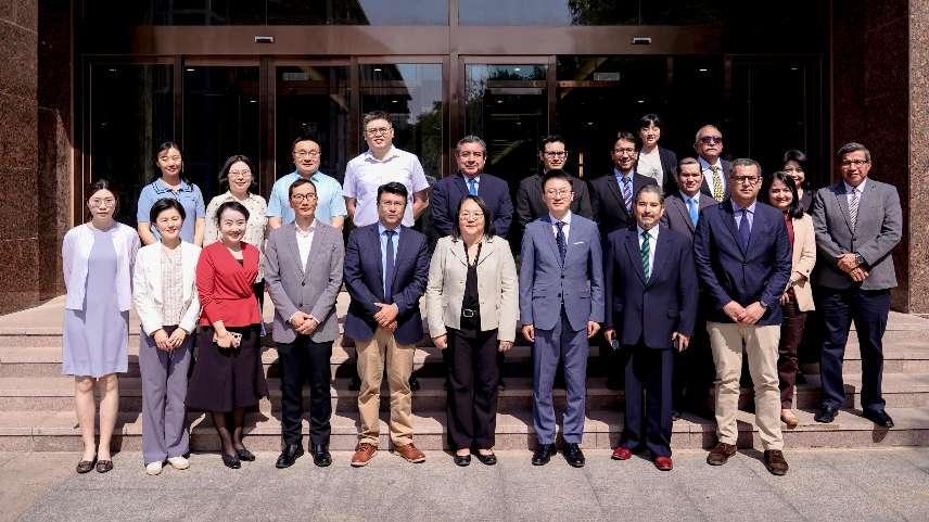 我校国际交流与合作处处长钟丹丹,人类命运共同体研究院副院长刘丰海,信息与通信工程学院副院长章文辉,计算机与网络空间安全学院副院长张晶晶,广告学院副院长侯玥,新闻学院传播系主任曾兴,外国语言文化学院西班牙语专业负责人张晴、西班牙语教师胡实,广告学院教师沈晶晶、高山等参加了此次会见。