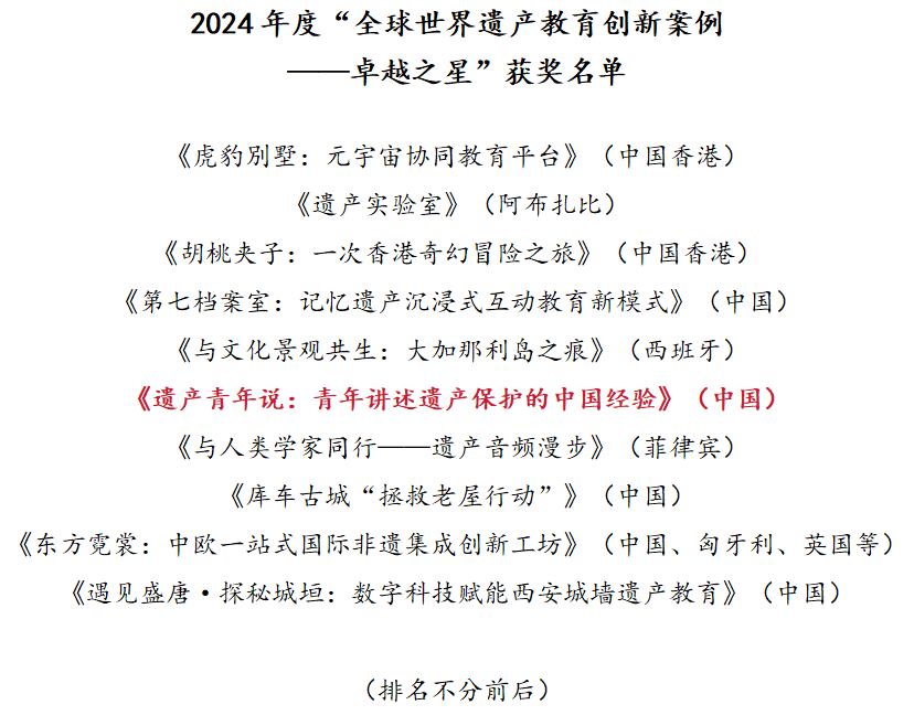 “全球世界遗产教育创新案例——卓越之星奖”获奖名单