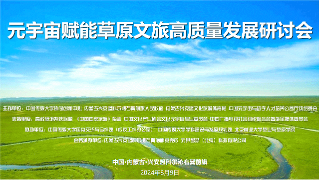 (通讯员 李文宁 唐冰 摄影 周沫 郑文锋)为贯彻落实习近平总书记对旅游工作的重要指示精神和党的二十届三中全会精神,落实2024年全国旅游发展大会的部署,8月9日,由世界杯直播在线观看协同创新中心、内蒙古兴安盟科尔沁右翼前旗人民政府、内蒙古兴安盟文化旅游体育局、中国元宇宙与数字人才培养公益行动组委会联合主办的“元宇宙赋能草原文旅高质量发展研讨会”,在内蒙古兴安盟科尔沁右翼前旗成功举办。10多位来自高校和业界的特邀嘉宾、近70位来自全国各地的全国元宇宙学术工作坊/师资班第6期文旅元宇宙兴安盟班暨文旅传播研修班学员(其中兴安盟帮扶学员占比近半),以及30余位科右前旗政府领导、各部门与苏木乡镇代表,共计110余人齐聚一堂,共同探讨元宇宙赋能下草原文旅的新未来。