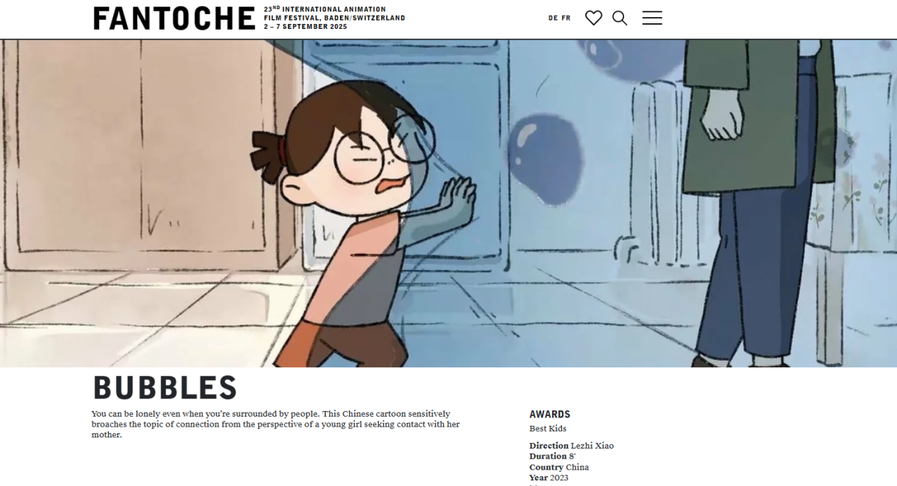 瑞士Fantoche国际动画节泡泡抱抱(Bubbles)专页截图