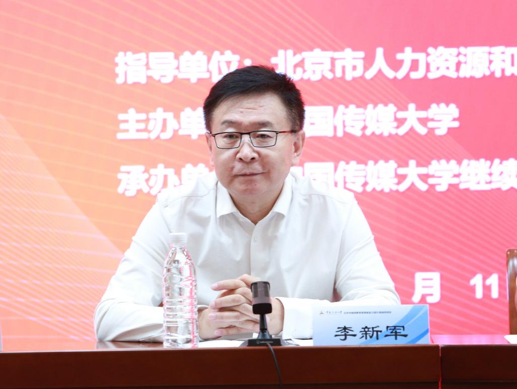 李新军在致辞中向北京市人力资源和社会保障局对我校的信任与支持表示衷心感谢,对各位领导、各位学员的到来表示诚挚欢迎。他介绍了学校办学特色、近年来在服务国家重大战略方面进行的布局及继续教育事业等领域取得的成绩,阐述了继续教育、终身学习的重要性和必要性。李新军表示,继续教育是提升全民素质、服务经济社会发展的重要途径,也是推动终身学习、构建学习型社会的重要举措。学校将充分发挥好国家级专业技术人员继续教育基地的作用,为北京市乃至全国的继续教育事业作出更大的贡献。