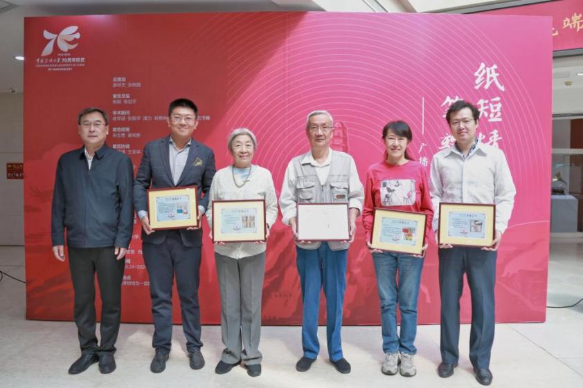 在藏品捐助仪式环节,世界杯直播在线观看党委副书记、纪委书记蔺海波代表学校向为此次展览捐赠展品的广播先辈亲属代表——温飈、齐虹、胡晓林、崔红、李奥利、李理颁发了捐赠证书。