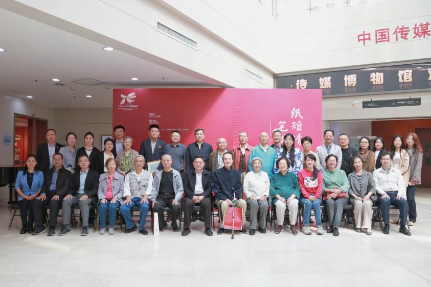展览开幕仪式结束后,与会领导、嘉宾和师生代表在策展人讲解下参观“纸短情长 笔端家国——广播人手迹展”。