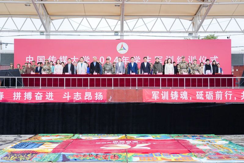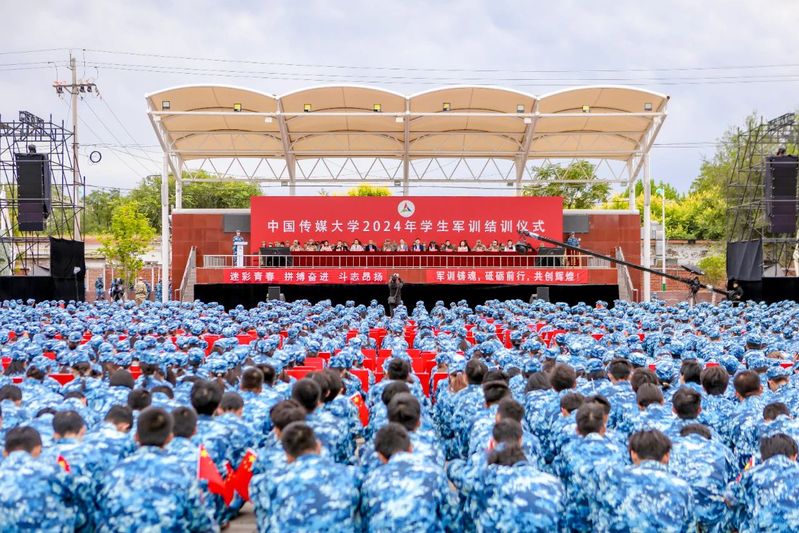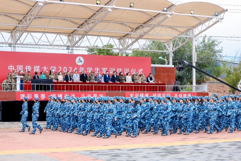 仪式最后,全体参训学生变换阵型,拼出“CUC”和“1949-2024 我的中国心”字样,表达了中传学子对祖国的生日祝福。