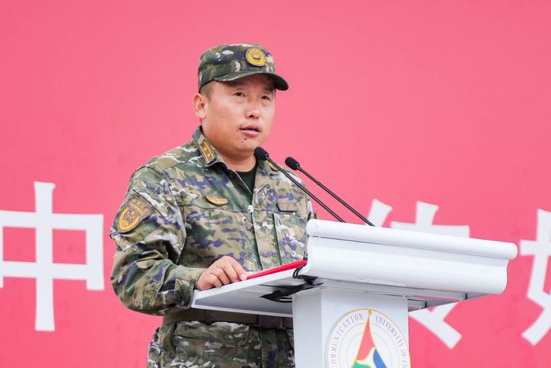 武警北京总队某支队教导员肖仁中校代表承训部队充分肯定了参训学生在军事技能训练中取得的进步和成绩。他勉励同学们无惧艰险、矢志前行,将在军训中的所学所思转化为未来学习生活中的不竭动力,奋力攀登新的高峰。