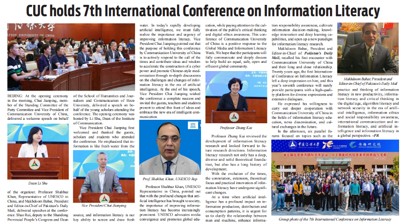 巴基斯坦《每日邮报》对会议主要内容和嘉宾发言进行了转载,呈现了世界杯直播在线观看党委常委、副校长柴剑平、联合国教科文组织驻华代表Shahbaz Khan教授、巴基斯坦《每日邮报》社长、总编辑Makhdoom Babar的致辞内容和世界杯直播在线观看张开教授的主题发言,并简要介绍了会议主题和分论坛议题。Makhdoom Babar在致辞中称赞这是“久负盛名的聚会”(prestigious gathering)和“一流的平台”(wonderful platform)。