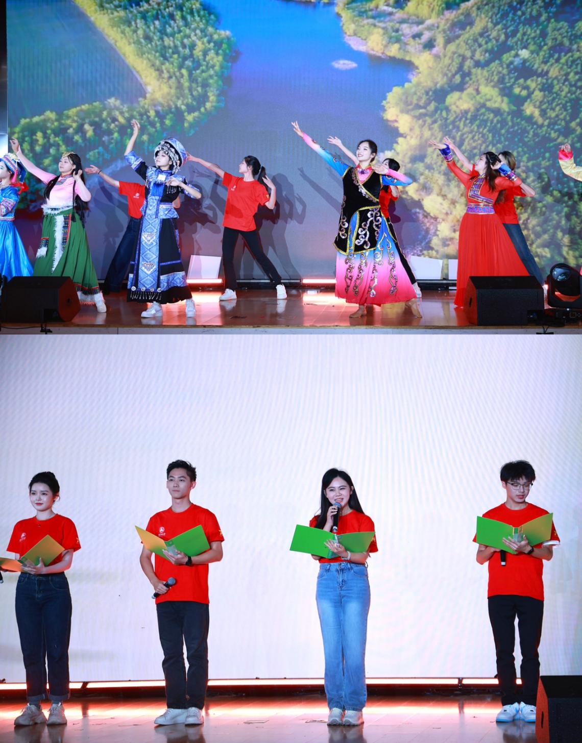 发言环节结束后,“芳华七秩,颂你成诗”大型诗会正式开始。在序章——风华中传中,母校七十年栉风沐雨、砥砺奋进的风貌尽展眼前。轻盈的步伐与灵动的旋转,是舞蹈《绽放》的表演者们对民族情怀的生动演绎,是民族之花在人文舞台上的绚烂盛放。由人文学院师生主创的短片《风华中传》和朗诵《好好做个读书人》则以温暖的画面和深情的朗诵表达了对母校的感念,对知识的渴求,以及珍惜春光、立志成才的决心。