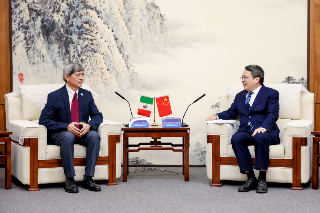墨西哥塞提斯大学特聘讲座教授、中国事务主任梅莉·芮梦德,人类命运共同体研究院院长李怀亮,国际交流合作处处长钟丹丹、副处长王文渊等参加会见。