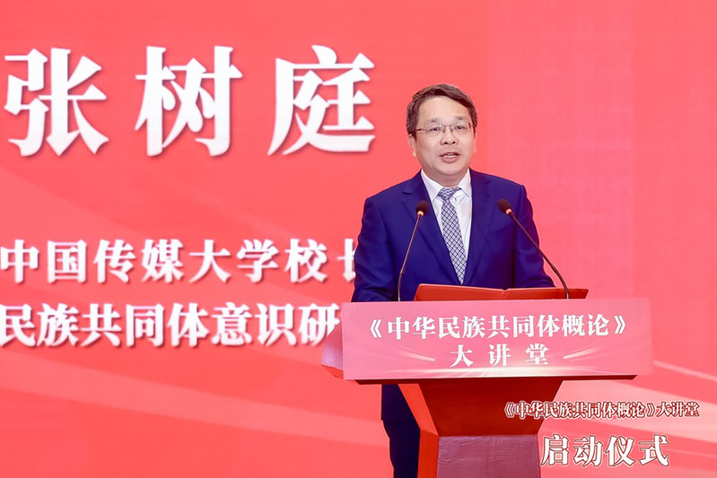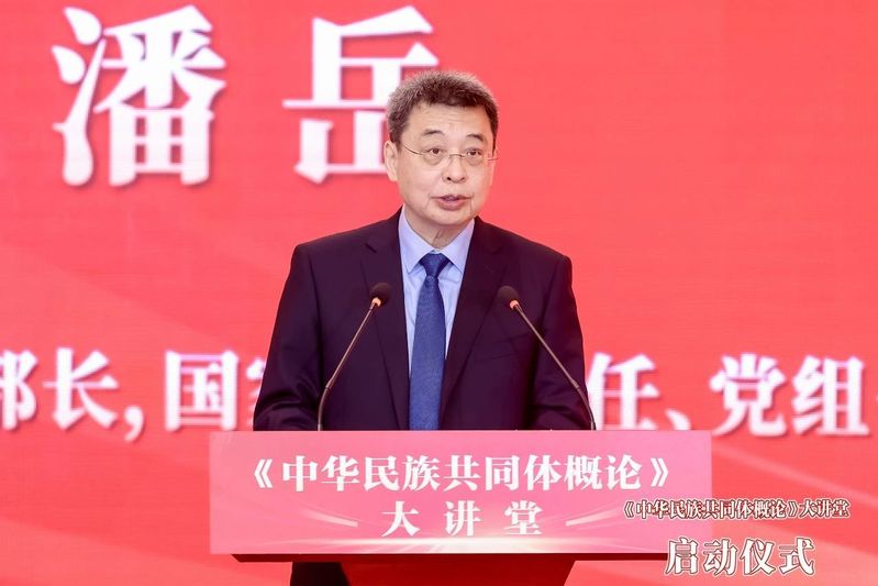 潘岳在致辞中强调,要深入学习宣传贯彻习近平总书记在全国民族团结进步表彰大会上的重要讲话精神,深刻理解中国特色解决民族问题正确道路的内涵特征,始终着眼中华民族的根本利益和整体利益;深刻理解中华民族共同体意识的魂脉和根脉,始终把握党的民族工作的理论指引和文化根基;深刻理解中华民族共同体形成发展的基本规律,始终牢固树立“五个共同”中华民族历史观。按照习近平总书记编好用好《中华民族共同体概论》等教材的重要指示,国家民委组织编写了这本教材,填补了铸牢中华民族共同体意识教育国家统编教材的空白。教材坚持“两个结合”,以中华民族“三交史”为主脉,揭示中华民族共同体从自在到自觉、从传统到现代、从多元凝聚成一体的理论和实践逻辑,构建中华民族共同体史料、话语和理论体系,创新推动马克思主义民族理论中国化最新成果进课堂、进校园。世界杯直播在线观看把《概论》教材以可视化方式创新传播,把历史叙事变成影音图像,推动《概论》从课堂走上荧幕、从校园辐射社会,增强了针对性和吸引力。大讲堂课程视频是推动有形有感有效开展铸牢教育、创新高校思政教育、引导各族青年学子深植共同体理念的全新模式,值得大力推广。