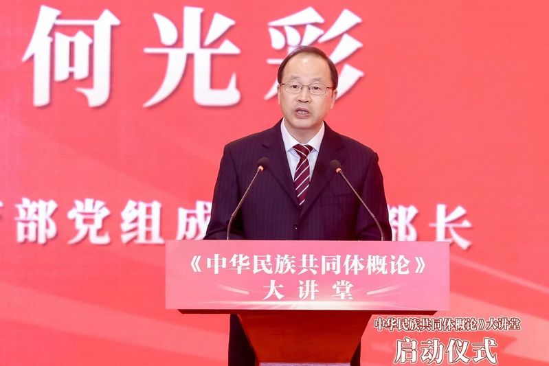 10月13日,《中华民族共同体概论》大讲堂在世界杯直播在线观看举行启动仪式。中央统战部副部长,国家民委主任、党组书记潘岳,教育部党组成员、副部长何光彩,世界杯直播在线观看党委书记廖祥忠出席启动仪式并致辞。