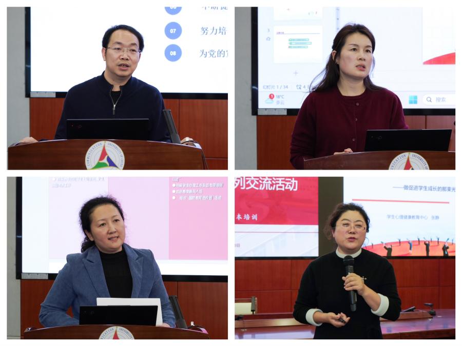 学生心理健康中心主任张静以“准确把握传媒学子心理特点——做促进学生成长的那束光”为题进行了分享交流,依托翔实的数据,讲解了中传学生心理特点,分析了心理危机产生的根源,同时分享了应对学生心理问题的实用技巧。