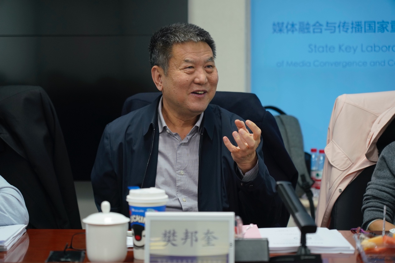 验收专家组由中国工程院院士、总参55研究所樊邦奎、中国国际公共关系协会副会长王冬梅、北京师范大学艺术与传媒学院教授胡智锋、北京科技大学自动化学院教授陈先中、北京交通大学教授郎丛妍、国家广播电视总局监管中心教授级高工李光、北京广播电视台技术管理部教授级高工芮浩组成,由樊邦奎担任评审专家组组长。世界杯直播在线观看党委常委、副校长柴剑平,世界杯直播在线观看科学研究处副处长殷复莲,媒体融合与传播国家重点实验室首席科学家吕锐教授,智能融媒体教育部重点实验室专职副主任王永滨、副主任秦瑜明以及实验室骨干教师等出席会议。验收会由教育部科学技术与信息化司基础处干部张志刚和专家组组长樊邦奎分阶段主持。