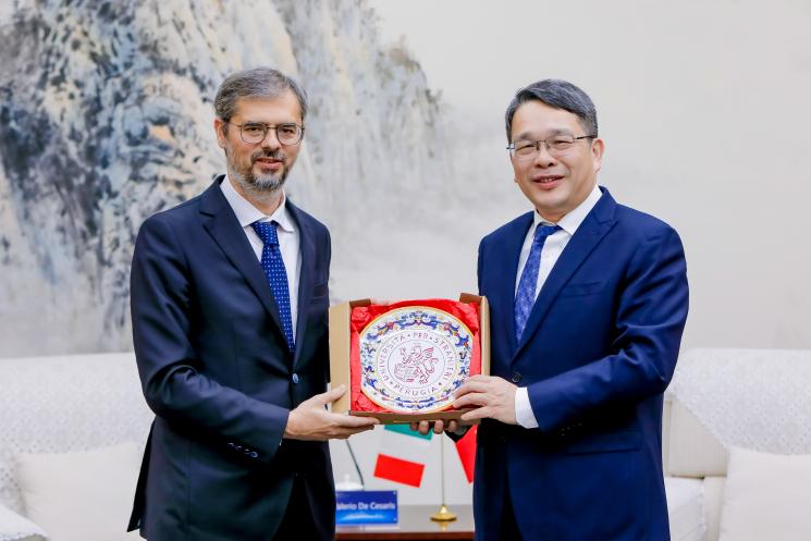 外国语言文化学院院长文春英、外国语言文化学院副院长刘颖、国际交流与合作处副处长江渺渺、外国语言文化学院意大利语专业负责人朱益姝等参加会见。