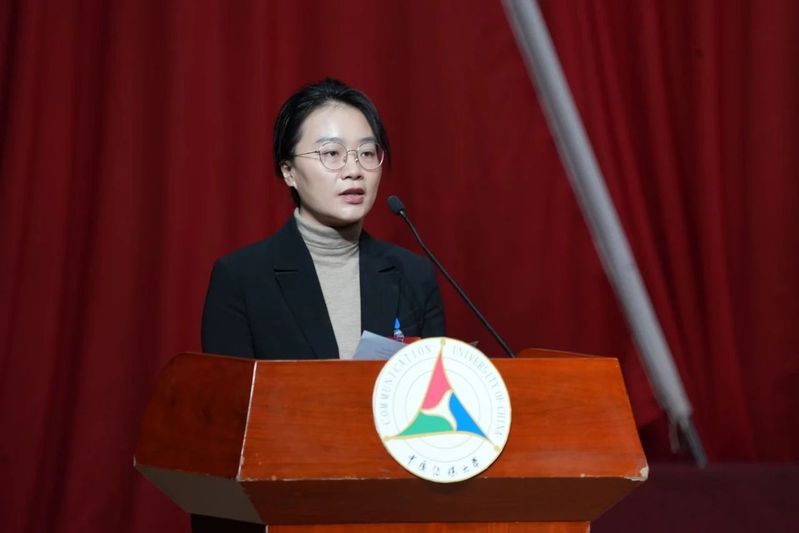 校团委书记郑丹琪在致辞中回顾了过去一年校学生会、研究生会在思想建设、学术实践、文体活动、志愿服务、创新创业等方面取得的显著成果,号召广大同学们以校庆70周年为新起点,在守正创新中不断探索前进,在思想引领、技术开拓、舆论引导等领域中勇做开路先锋,不断续写传媒学子的青春华章。