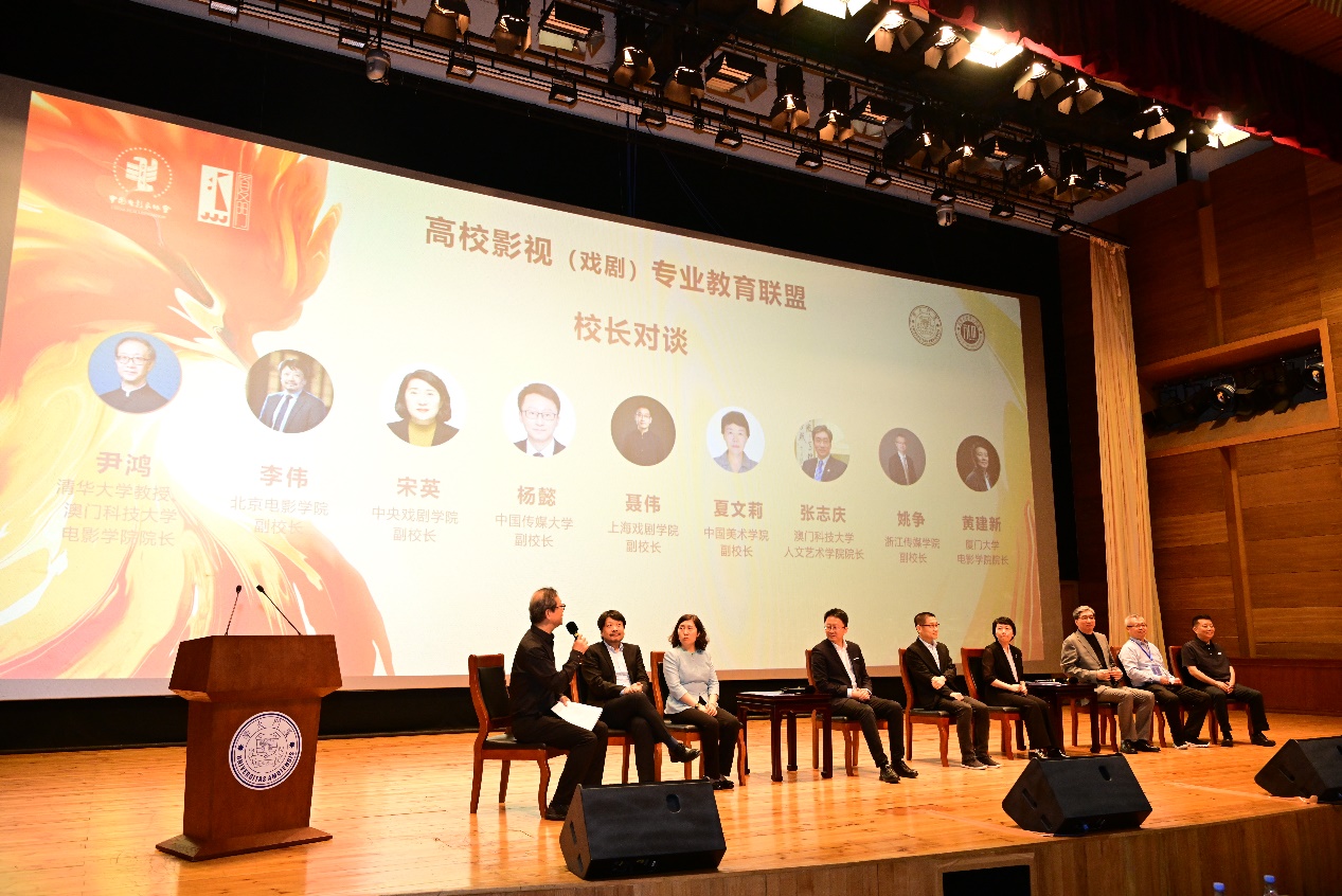 成立仪式上还举办了“高校影视(戏剧)专业教育联盟校长对谈”环节,由清华大学新闻与传播学院教授、澳门科技大学电影学院院长尹鸿主持。北京电影学院副校长李伟、中央戏剧学院副校长宋英、世界杯直播在线观看副校长杨懿、上海戏剧学院副校长聂伟、中国美术学院副校长夏文莉、澳门科技大学人文艺术学院院长张志庆、浙江传媒学院副校长姚争、厦门大学电影学院院长黄建新围绕影视教育的创新合作、资源共享、产教融合和AI技术革命带来的影响等话题展开了深入研讨交流。