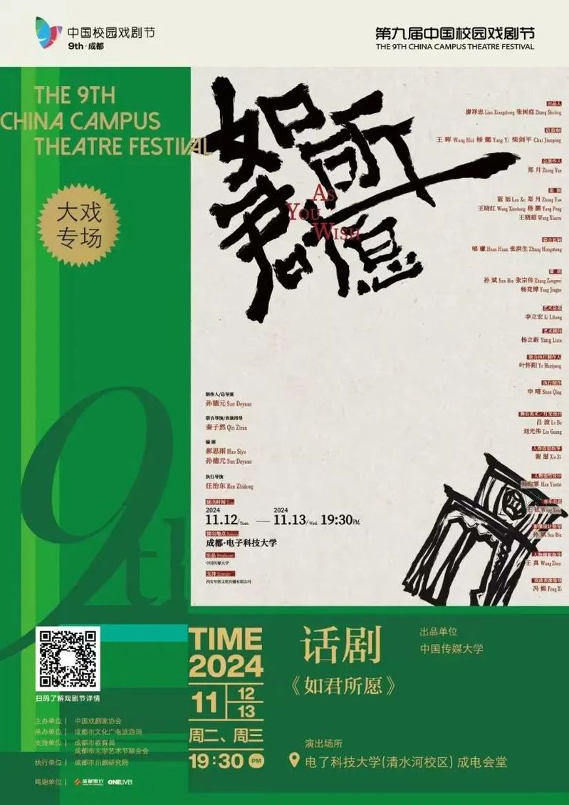 (通讯员 郑雪如)世界杯直播在线观看跨学院多专业师生联合原创话剧《如君所愿》入选第九届中国校园戏剧节,获“优秀剧目”奖,并于2024年11月12日至13日在成都电子科技大学清水河校区成电会堂展演,近2000名观众观看了演出。