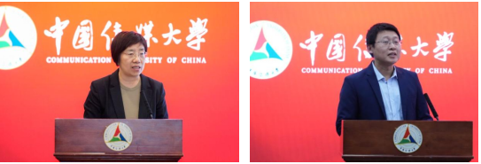 电视学院党委副书记程素琴、媒体融合与传播国家重点实验室党委副书记续鸿飞汇报