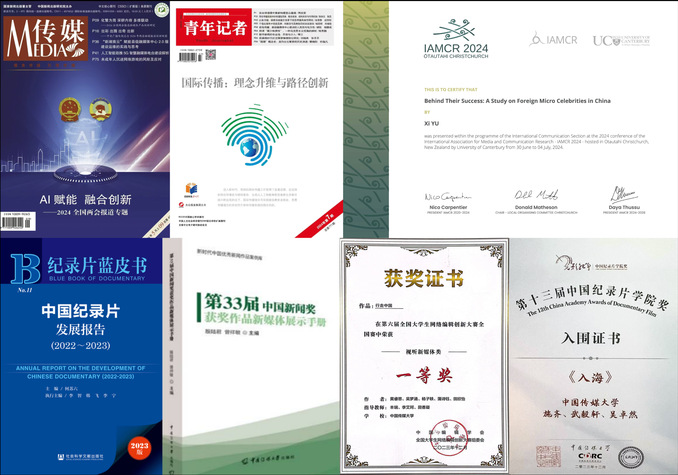 班级同学的多篇论文在核心期刊发表或在高水平国际会议宣读,参与国社科重大项目和各级科研课题20余项。多名同学参与《第33届中新奖获奖作品新媒体展示手册》等出版物的汇编出版工作,另有多部影像作品获国家级、省部级奖项。