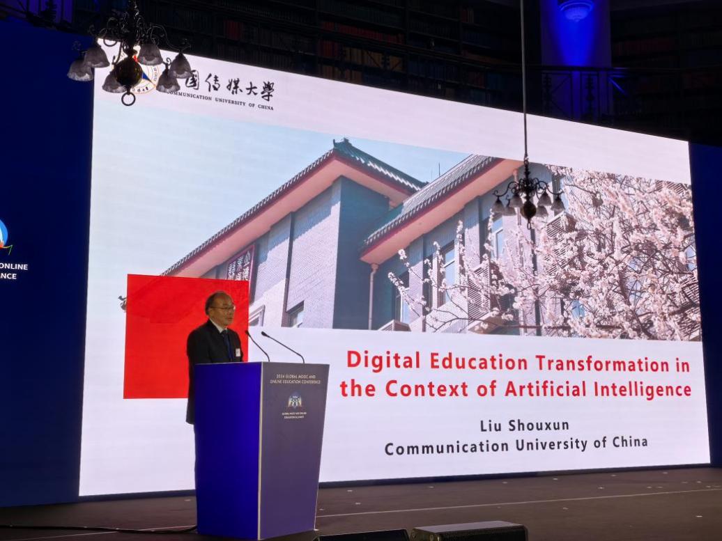 刘守训副校长以《人工智能背景下的教育数字化转型实践》为题作大会报告,向与会代表介绍了学校“强化顶层设计、筑牢技术基座、打造融合平台、提升治理能力”的数字化建设思路,展示了学校布局的“1+2+3”智理体系与基于教学新基座的“一纵一横”智学体系。他强调,学校以“人工智能+”和“+人工智能”为主线,将人工智能与办学治校全方位、深层次融合,重构智能传媒教育体系。