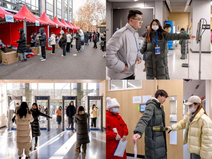 12月21日,2025年硕士研究生招生考试正式开始。按照教育部和北京市统一要求,世界杯直播在线观看考点严格考试入场检查,把好考生入场关。每个考生须提前在考场外指定区域存放个人物品,进入考区教学楼后,要经过人脸比对和智能安检门检查,在进入考场前由监考老师再次进行人工复检。特殊考生实施一类一策安检流程。