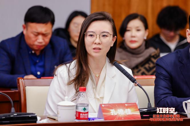 中国外文局亚太传播中心红色文化国际传播工作室特邀顾问孔唯佳女士用实际案例讲述了红色文化对青年一代的积极影响。她表示红色文化传播应当融入当代价值观,展现时代特征和意义,焕发新的时代光彩。她还对如何通过新媒体、新技术等手段传承红色基因进行了分享,让与会者深受启发。