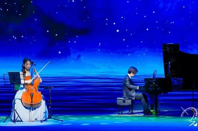 ▲ 韩寒北、王菲娜带来钢琴、大提琴合奏Long Way From Home